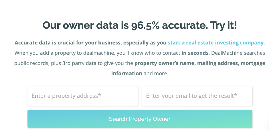 DealMachine claims its owner data is nearly 97% accurate, meaning if you pull up a property owner's information and try to call them or send direct mail, you'll probably be targeting the right person.