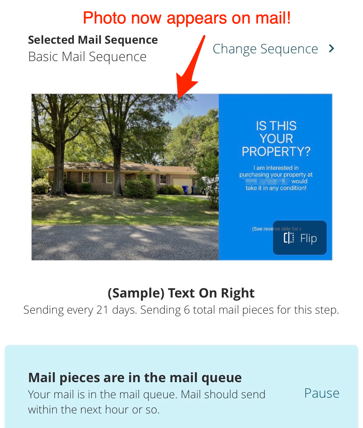 You can change the photo manually in the DealMachine app. I highly recommend changing the photo so an image of the actual home appears on the mail – it's much more personalized, and it should get you a higher response rate.