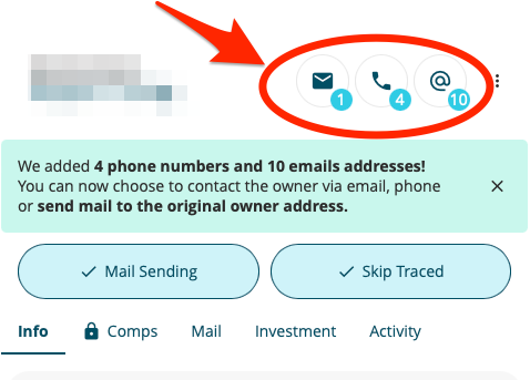 You can also "skip trace" homeowners to pull up their contact information (email, physical addresses, and phone numbers).