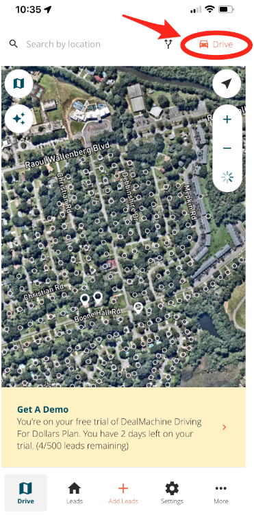 The app now tracks your route, miles and time driven, and any properties you add to your list. You can now start driving and looking for off-market deals!