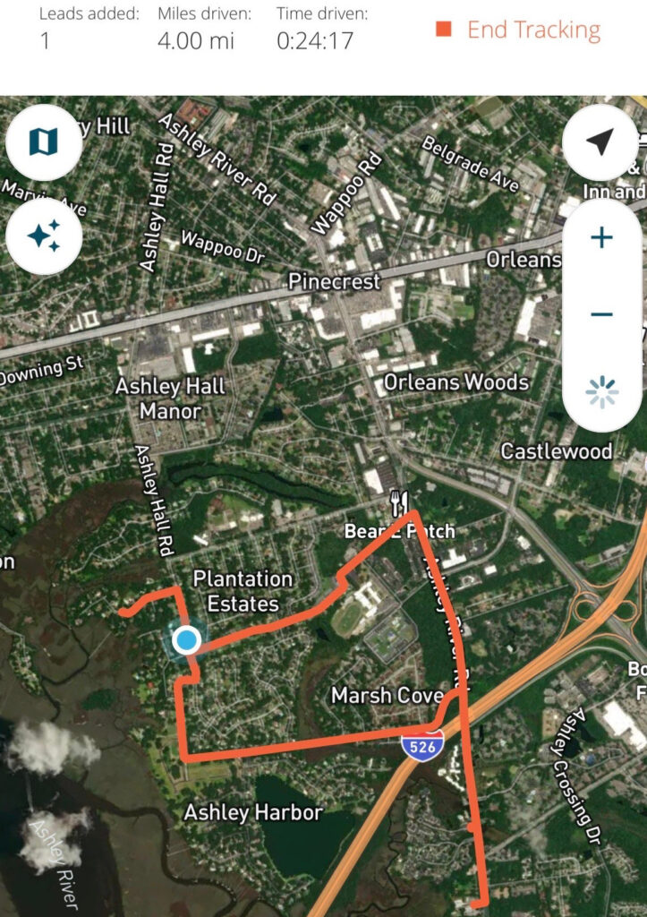 DealMachine also tracks your driving route (a line follows you as you drive), so you're not driving the same route twice.