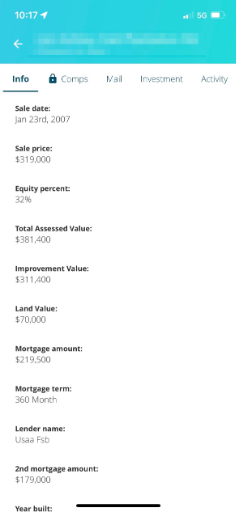 In a matter of seconds, I was able to pull up the home's last sale date and sale price, the owner's mortgage information and estimated home equity percent, and the home's tax assessed value.