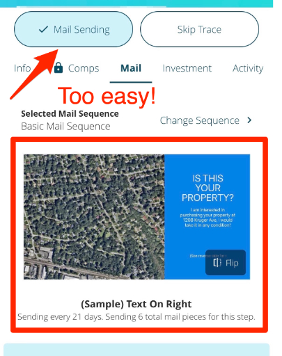 DealMachine will now send out its default mail to the homeowner every 21 days, with a total of 6 mail pieces to be sent.