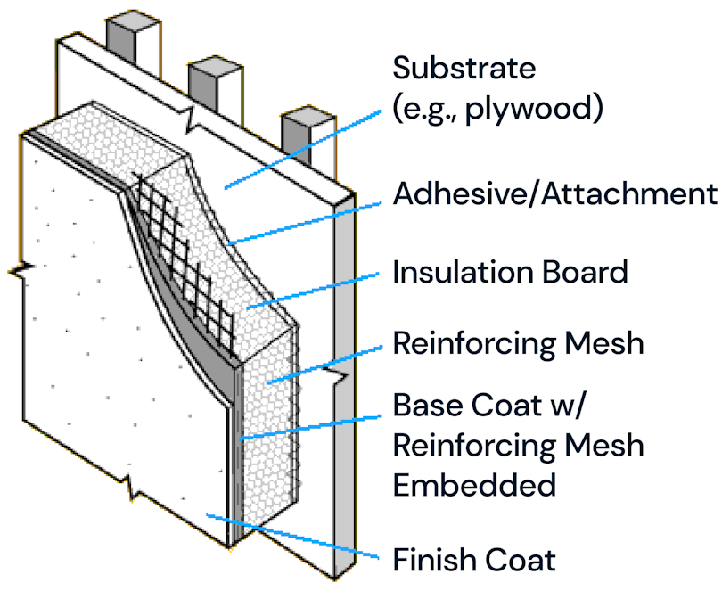 Unlike traditional stucco, EIFS has several layers. Notably, it binds a layer of insulation to the siding itself, protecting the insulation — as well as the framing, plumbing, electrical, and foundation — from water damage.