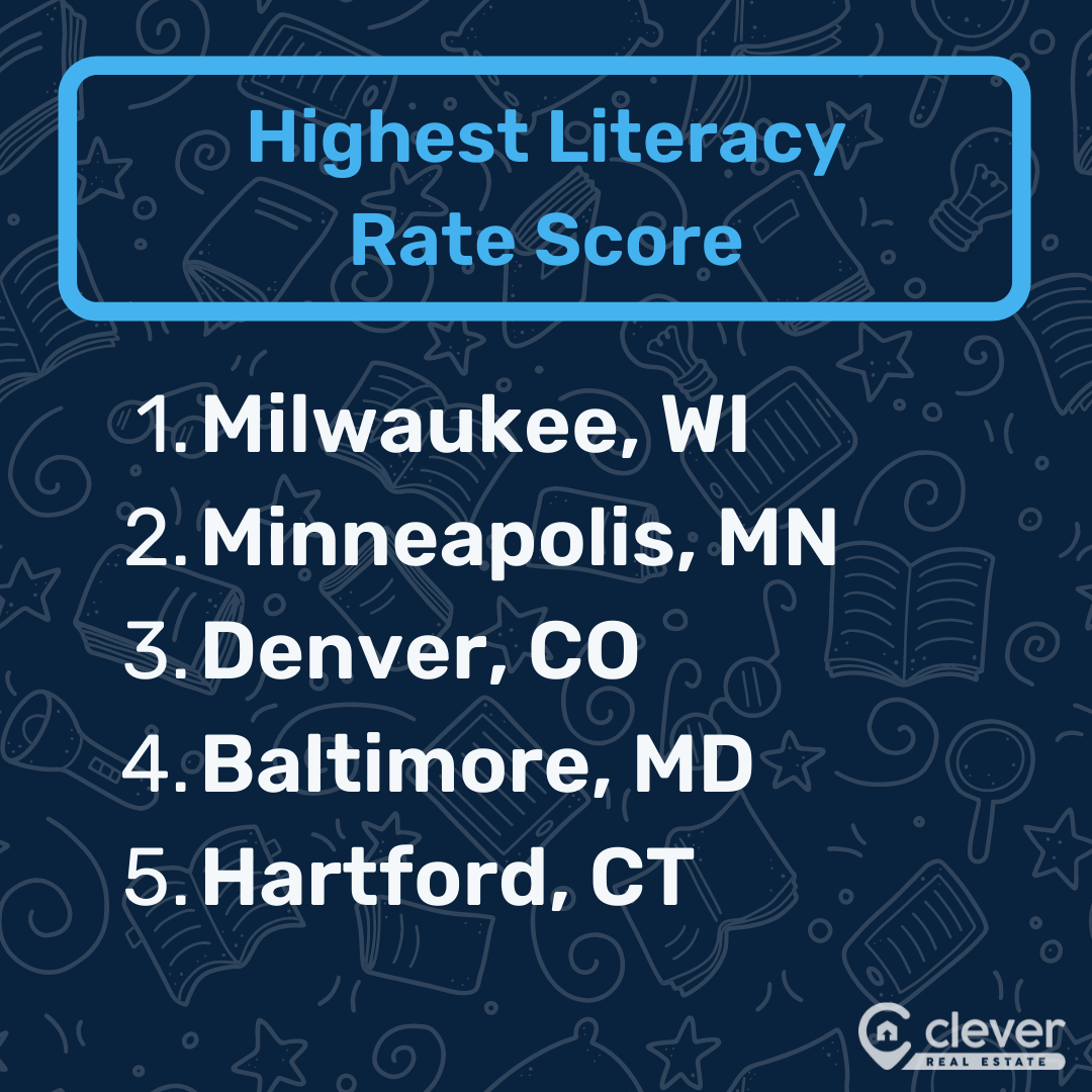 | 📚 What is the most literate city in America? 📚 The most literate of the 50 most populous cities in the U.S. is Milwaukee with a literacy score of 280 out of 500, followed closely by Minneapolis (279) and Denver (278). |
