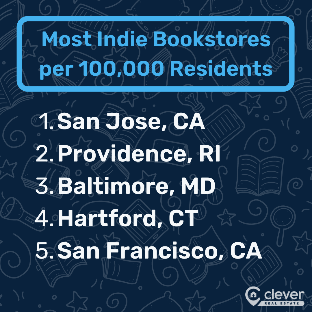 | 📚 Best in Shelves The San Jose metro area has something for everyone as home to the most independent bookstores per 100,000 people at 4.5 – a 346% higher rate than the average city in our study. |