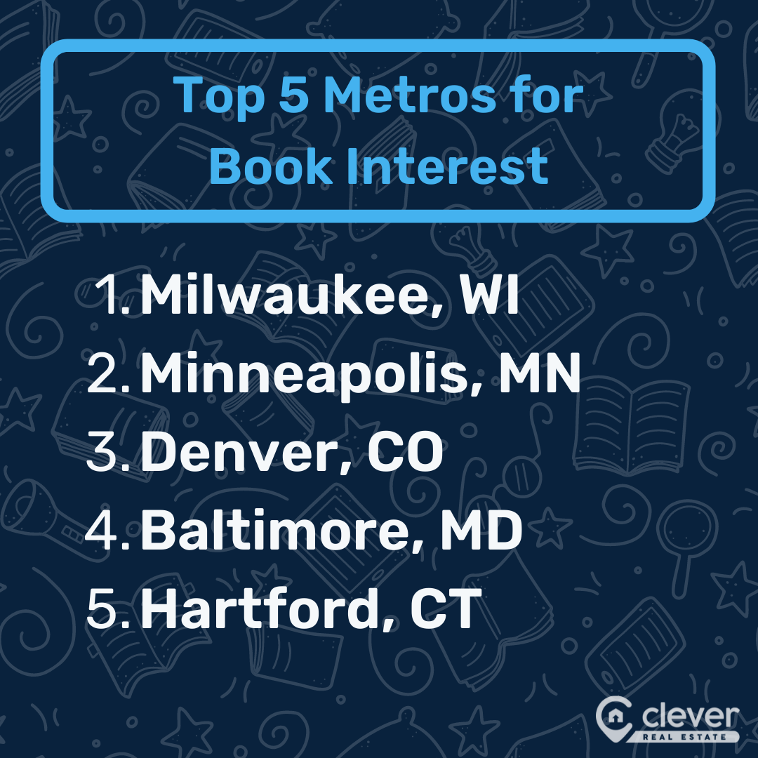 Clever Real Estate compared the 50 most populous U.S. metro areas across 19 metrics, listed below. Each metric was normalized and graded on a 100-point scale. The combined weighted average of each score determined the overall "book city" score upon which the final ranking was based.