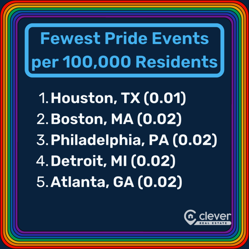 - New Orleans has the most pride celebrations per capita (0.32), while Houston has the fewest (0.01).👇